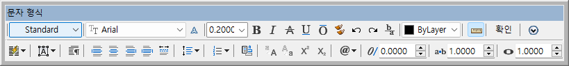 해당 문자가 위치한 도면층에 연관된 색상(BYLAYER) 또는 해당 문자가 포함된 블록의 색상(BYBLOCK)을 문자에 지정할 수 있습니다. 색상 리스트에 있는 색상 중 하나를 선택하거나 기타를 클릭하여 색상 선택 대화상자를 열 수도 있습니다.