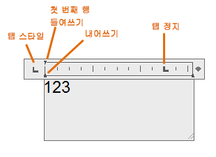 - 삽입. 새 탭의 위치를 눈금자에서 클릭합니다.
