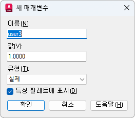 사용자 매개변수를 블록 참조에 대한 특성 팔레트에 특성으로 표시할지 여부를 지정합니다.