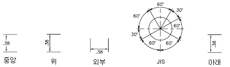 문자가 치수보조선 안에 있을 때는 치수 선을 따라 문자를 정렬하고, 문자가 치수보조선 밖에 있을 때는 문자를 수평으로 정렬합니다.