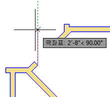 극좌표 추적에서는 지정한 극좌표 각도 및 각도 증분으로 커서 이동을 안내합니다.