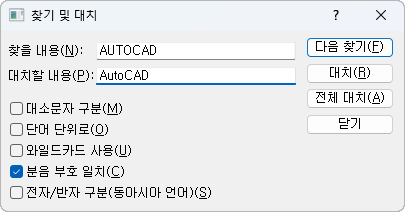 MTEXT(명령) 찾기: 문자 편집기 또는 MTEXT 바로 가기 메뉴에서 찾기 및 대치를 선택합니다.