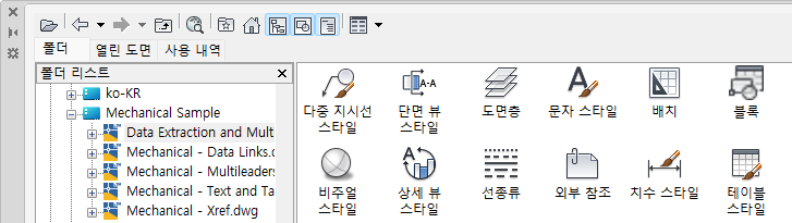 DesignCenter를 사용하면 도면 파일, 블록 정의 및 해치와 같은 컨텐츠를 신속하게 찾을 수 있습니다.