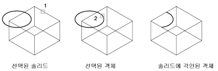 예를 들어 원이 상자의 면과 겹치는 경우 솔리드에 이 겹치는 면을 각인할 수 있습니다.