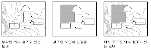 도면을 열 때 모든 도면 참조(외부 참조)는 자동으로 업데이트됩니다. 가장 최신 버전이 도면에 표시되게 하려는 경우 외부 참조를 업데이트할 수도 있습니다.