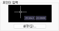 포인터(커서) 입력이 켜진 상태에서 명령이 진행 중이면 커서 근처의 툴팁 입력 상자에 십자선의 좌표 위치가 표시됩니다. 명령행 대신 툴팁에 좌표를 입력할 수 있습니다.