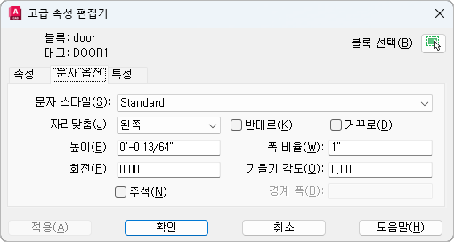 속성 문자의 문자 스타일을 지정합니다. 이 문자 스타일의 기본값이 이 대화상자에 표시된 문자 특성으로 지정됩니다.