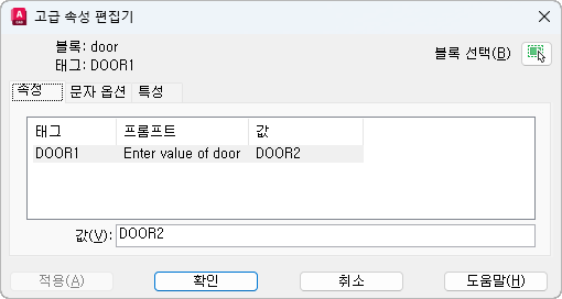 사용자의 좌표 입력 장치로 블록을 선택하는 동안 대화상자가 임시적으로 닫힙니다.