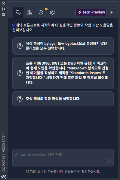 AI 안내 도움말을 제공하는 Autodesk Assistant 팔레트를 표시합니다.