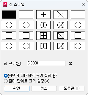 점 스타일은 PDMODE 시스템 변수에 저장됩니다.