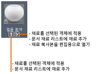 재료의 특성 설정을 편집하려면 재료의 견본을 두 번 클릭하거나 재료의 견본을 마우스 오른쪽 버튼으로 클릭하고 편집을 클릭합니다.