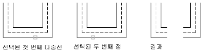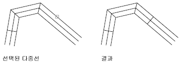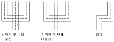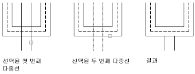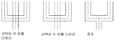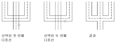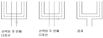 두 개의 여러 줄 사이에 병합된 T자형 교차를 작성합니다. 여러 줄은 잘리거나 다른 여러 줄과의 교차점까지 확장됩니다.