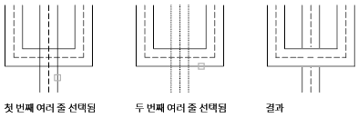 두 여러 줄 사이의 병합된 십자형 교차를 작성합니다. 여러 줄을 선택하는 순서는 중요하지 않습니다.