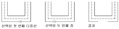 두 여러 줄 사이의 닫힌 T자형 교차를 작성합니다. 첫 번째 여러 줄은 두 번째 여러 줄과의 교차점까지 잘라지거나 연장됩니다.