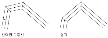 여러 줄 사이의 구석 접합을 작성합니다. 여러 줄은 잘리거나 교차점까지 확장됩니다.