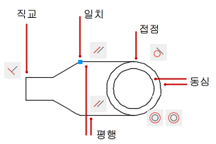 예를 들어, 선이 항상 서로 직교하도록 하거나 호와 원은 항상 동심을 이루도록 하거나 선이 항상 호에 접하도록 지정할 수 있습니다.