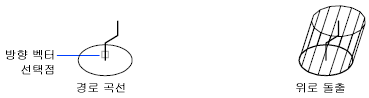 선 또는 열린 폴리선을 지정하여 스윕 방향을 정의합니다.