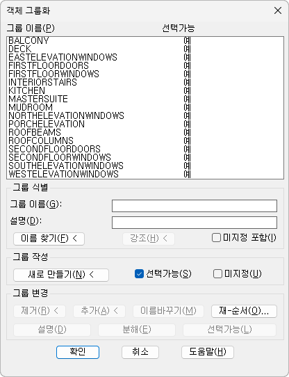 그룹이 선택 가능한지 지정합니다. 그룹을 선택할 수 있는 경우 그룹 내의 한 객체를 선택하면 전체 그룹이 선택됩니다. 잠겨 있거나 동결된 도면층 위에 있는 객체는 선택되지 않습니다. PICKSTYLE 시스템 변수가 0으로 설정된 경우에는 그룹을 선택할 수 없습니다.
