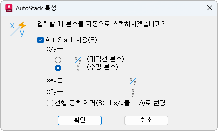 AutoStack이 켜져 있는 경우 슬래시(/)를 수평 분수로 변환합니다.