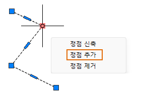 선택한 끝 그립에서 연장되는 폴리선에 정점이 추가됩니다.