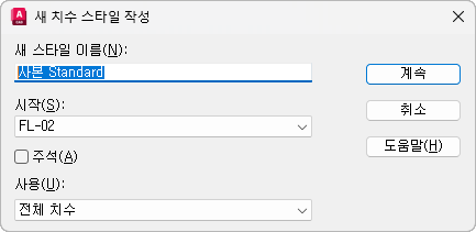 새 치수 스타일 특성을 정의할 수 있는 새 치수 스타일 대화상자를 표시합니다.