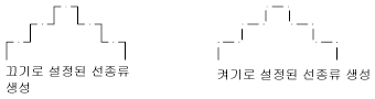 폴리선의 정점을 통해 연속되는 패턴의 선종류를 생성합니다. 이 옵션이 꺼져 있는 경우 각 정점에서 대시로 시작하고 끝나는 선종류가 생성됩니다. 선종류생성은 테이퍼된 세그먼트가 있는 폴리선에는 적용되지 않습니다.