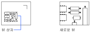 직사각형 뷰 상자를 사용하여 초점이동 및 줌합니다. 뷰 상자는 도면을 축소 또는 확대하고 도면 주위로 이동할 수 있는 뷰를 나타냅니다. 뷰 상자를 배치하고 크기를 조정하면 뷰 상자 안의 뷰에 맞춰 뷰포트가 초점이동 또는 줌됩니다. 투시 투영에서는 사용할 수 없습니다.