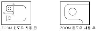 줌하여 직사각형 윈도우에 의해 지정된 영역을 표시합니다.