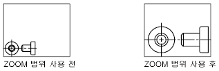 줌 확대 한계에 이르면 커서의 더하기(+) 기호가 사라져서 더 이상 줌 확대할 수 없음을 알려줍니다. 줌 축소 한계에 이르면 커서의 빼기(-) 기호가 사라져서 더 이상 줌 축소할 수 없음을 알려줍니다.