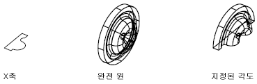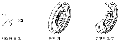 객체를 축 둘레로 스윕하여 3D 솔리드 또는 표면을 작성합니다.