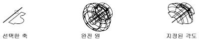 선, 선형 폴리선 세그먼트 및 솔리드나 표면의 선형 모서리를 축으로 사용할 수 있습니다.