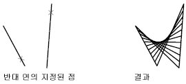 열린 곡선의 경우, 직선보간 메쉬의 구성은 곡선상에 지정된 점의 위치를 기준으로 합니다.