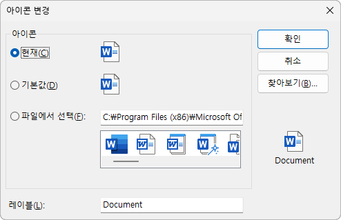 파일에서 아이콘을 지정합니다(유효한 유형은 EXE, DLL 및 ICO임).