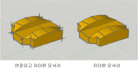 예를 들어, 선 연장, 지터 등의 모서리 수정자는 개념적 단계의 모형을 가시화합니다. 지터는 연필로 스케치한 것처럼 선을 나타냅니다. 선 연장은 또 다른 종류의 손으로 그린 효과를 나타냅니다.