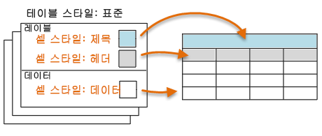 테이블의 모양은 레이블 및 데이터의 셀 스타일 컬렉션을 저장하는 해당 테이블 스타일에 따라 조정됩니다. 이러한 셀 스타일은 테이블의 각 셀에 지정됩니다.