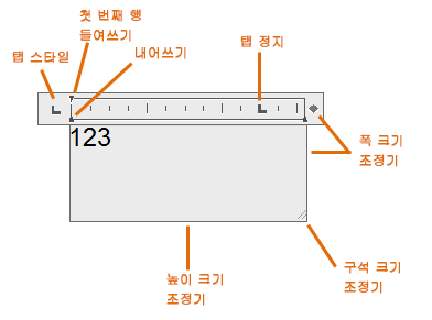 - 탭을 설정하려면 탭이 멈출 위치에 눈금자를 클릭합니다.