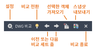 이 도구막대는 설정 패널과 이전 및 다음 컨트롤을 제공하는 DWG 비교 도구막대와 유사합니다.