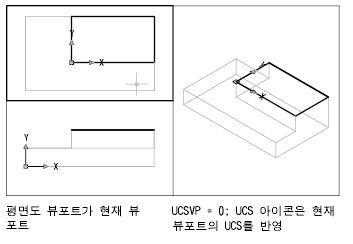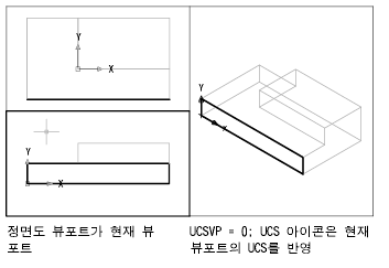 뷰포트를 현재 뷰포트로 만들 때마다 해당 뷰포트가 현재 뷰포트였을 때 마지막으로 사용한 것과 같은 UCS 방향을 사용할 수 있습니다.