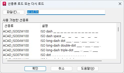 선종류 정의가 선종류 라이브러리(LIN) 파일에 있는 선종류를 로드합니다.