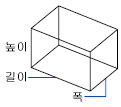 지정된 길이, 폭 및 높이 값으로 상자를 작성합니다. 길이는 X축, 폭은 Y축, 높이는 Z축에 해당합니다.