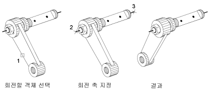 객체가 회전될 때 중심이 될 축의 시작점과 끝점을 지정합니다(2와 3).