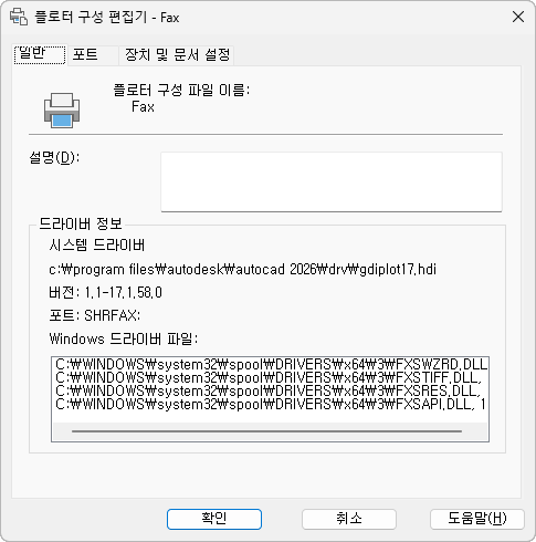 플로터 구성(PC3) 파일에 대한 기본 정보가 들어 있습니다.