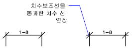 - 치수 선이 구조 눈금(비스듬한 스트로크) 화살촉의 치수보조선 너머로 연장하는 거리를 조정합니다.