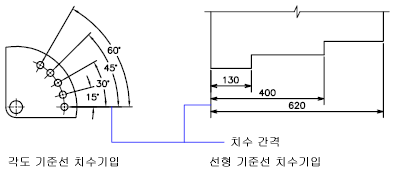 - 기준선 치수에서 연속 치수 선 사이 간격을 조정합니다.