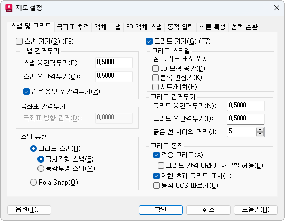 제도 설정 대화상자에서 설정을 필요한 대로 수정합니다.