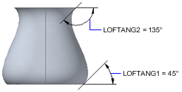 로프트 솔리드 또는 표면의 첫 번째 및 마지막 횡단 기울기 각도 및 크기를 조정합니다. 기울기 각도는 표면의 시작 방향입니다. 0은 곡선의 평면으로부터 바깥쪽으로 정의됩니다. (LOFTNORMALS 시스템 변수)
