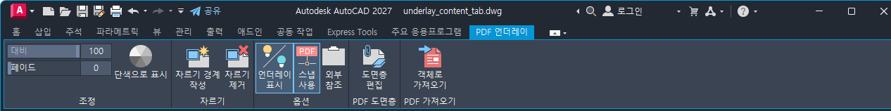 PDF 언더레이를 선택하면 PDF 상황별 탭이 리본에 나타납니다.