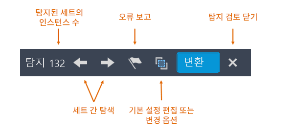 검토 모드에서는 도면 영역의 맨 위에 탐지 검토 도구막대가 표시됩니다.
