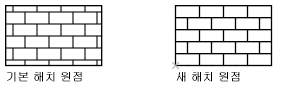 예를 들어 벽돌 패턴을 작성하는 경우에는 새 원점을 지정하여 해치되는 영역의 왼쪽 아래 구석에서 완전한 벽돌을 사용해 시작할 수 있습니다.