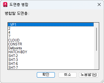 다른 도면층에 병합할 도면층을 지정합니다. Ctrl 키를 누른 상태로 클릭하여 둘 이상의 도면층을 선택할 수 있습니다.